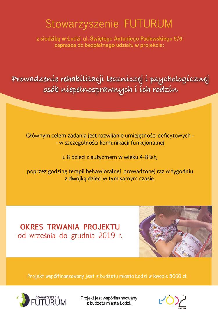 05/09/2019 Projekt: Prowadzenie rehabilitacji leczniczej i psychologicznej osób niepełnosprawnych i ich rodzin